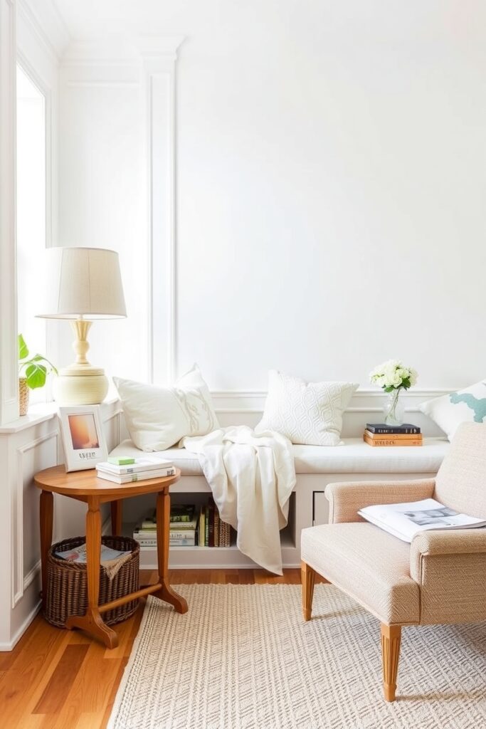 Every white living room deserves a quiet corner a nook that feels like a small secret.