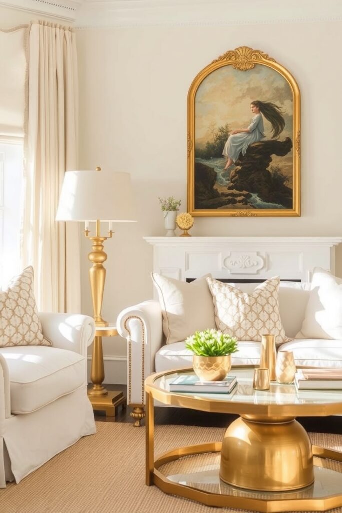 White and cream are good friends but gold is their favorite guest. A soft, brushed gold lamp base or a delicate frame around a mirror can lift the entire palette.