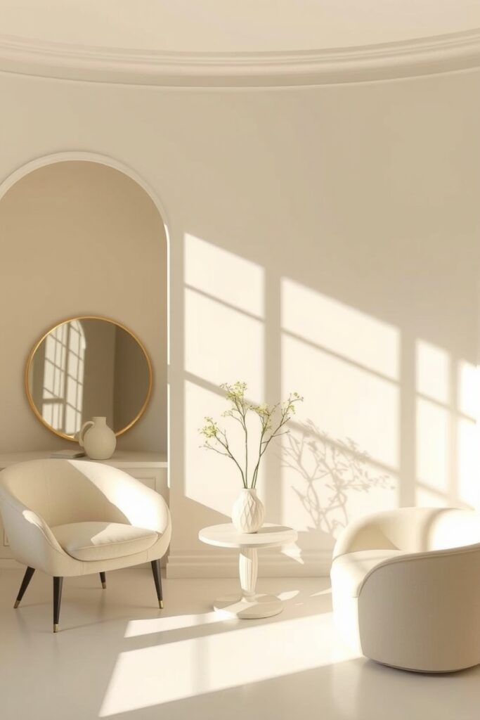 Play with curved furniture, wavy mirrors, arched alcoves. Let natural light carve lines across your walls during the day. Watch how the tones shift from milky white to buttery cream as the sun moves.
