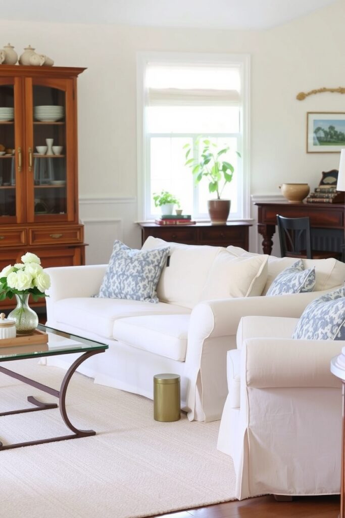 13. Tailored Cream Slipcovers with “Barely There” Piping