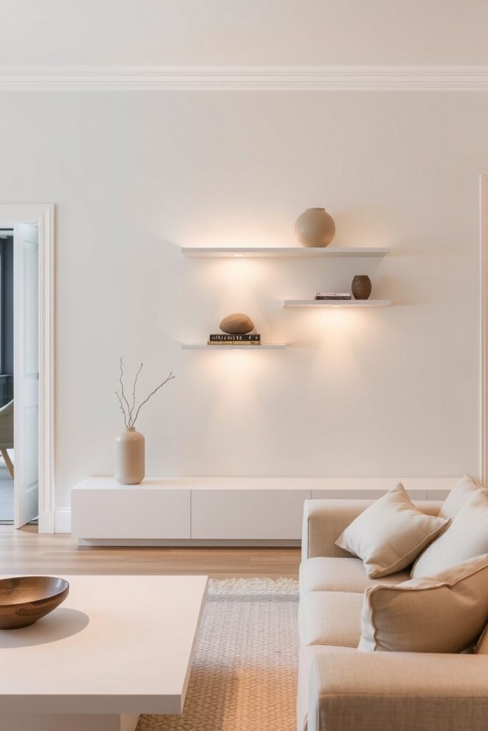 16. Cream Living Room with “Shadow Shelves”