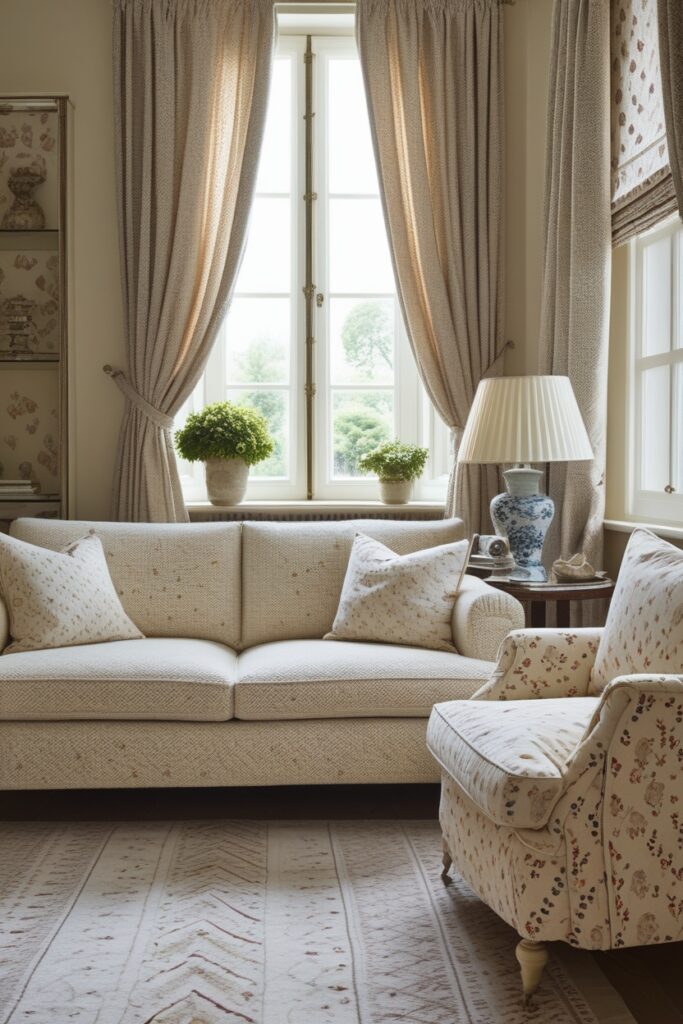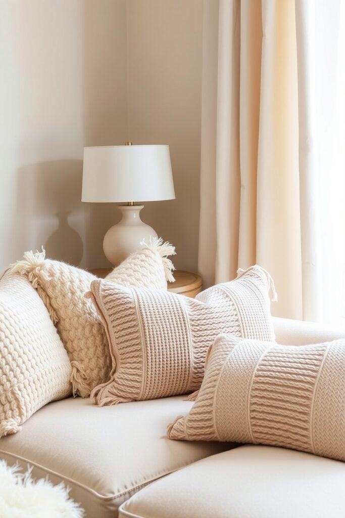 4. Cream Living Room with Micro-Pattern Décor