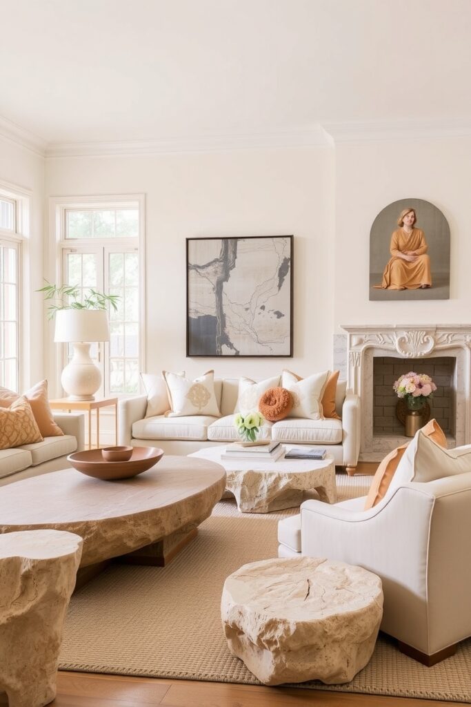 8. Cream Living Rooms with Oversized Natural Stone Pieces