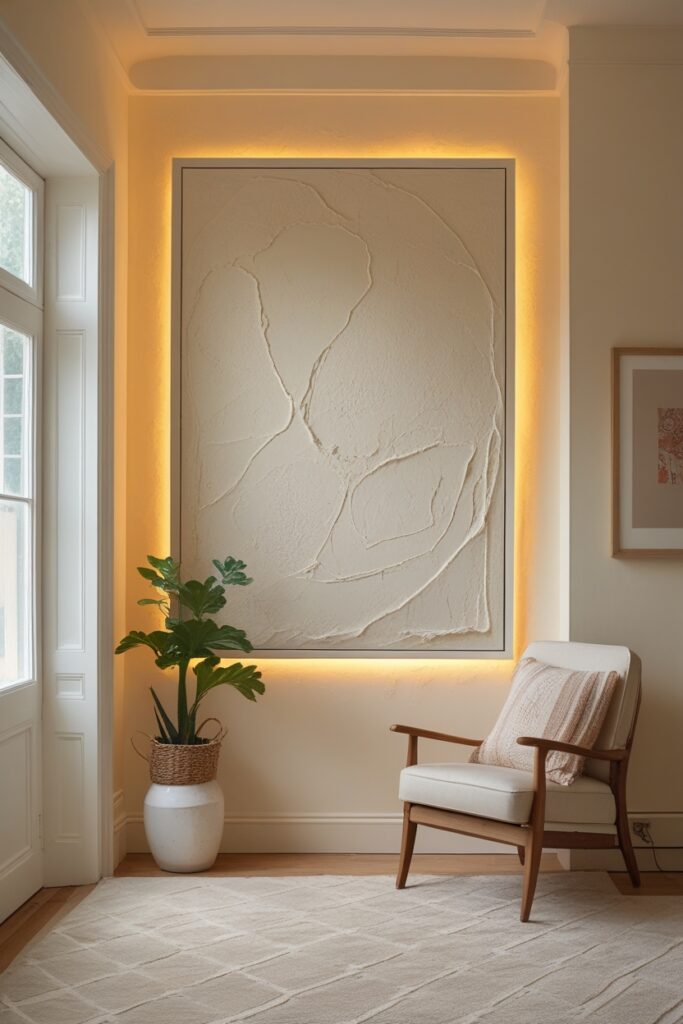 Imagine a cream room with one section in a chalky cream plaster just to frame the art.