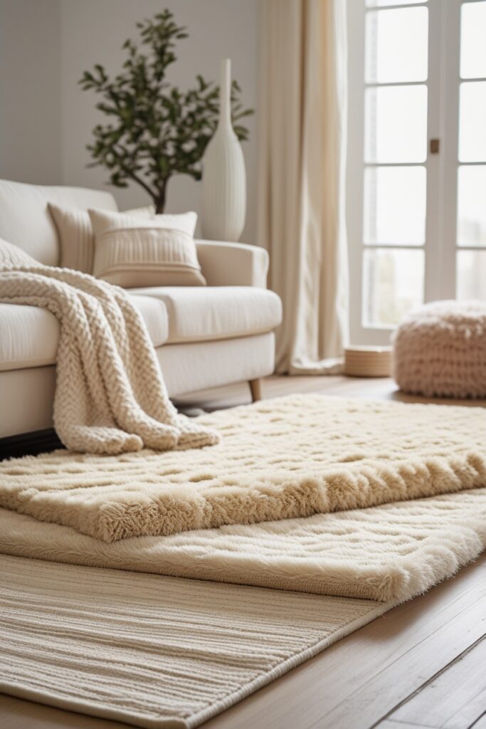 9. Layered Cream Rugs for Extra Softness