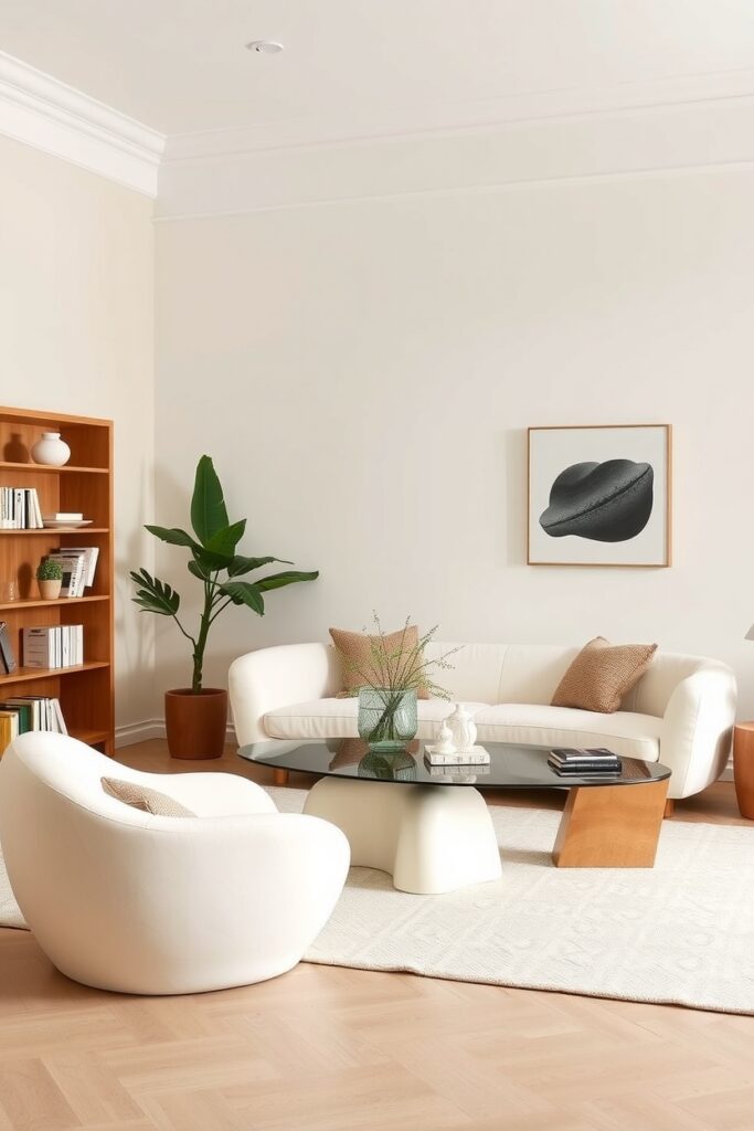 5. Sculptural Cream Furniture with Odd Curves