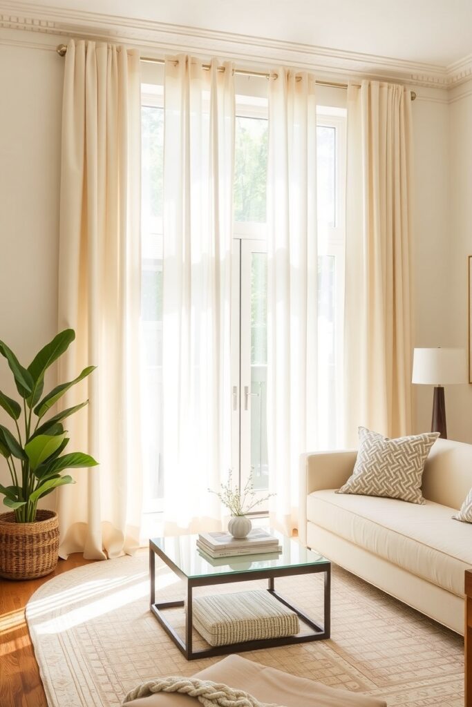11. Cream Living Room with Whisper-Soft Gradient Curtains