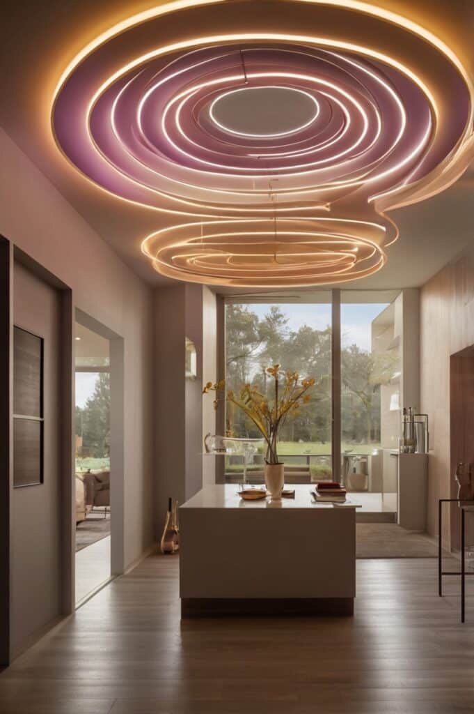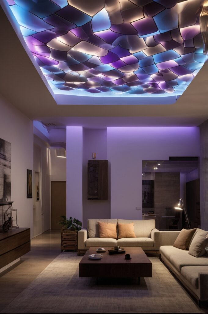 Drop ceilings become live companions for music nights at home. The room starts to feel like an instrument itself, vibrating with rhythm. Even silence feels alive when the ceiling slowly drifts into muted hues, like it’s catching its breath.