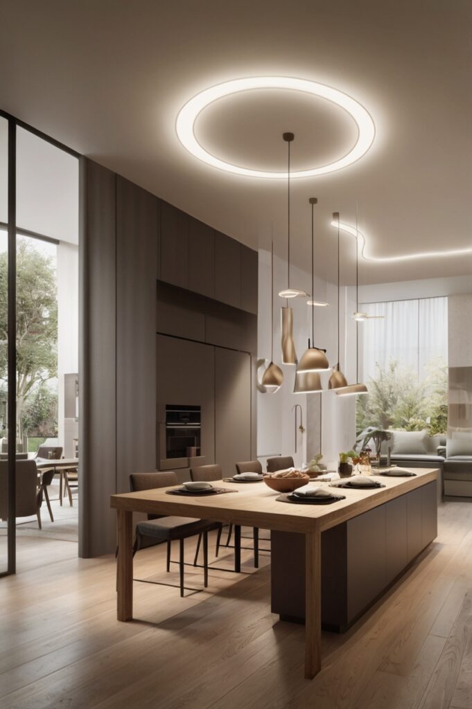This trick works crazy well in modern dining rooms. Guests don’t stare at the ceiling, but they feel it breathing around them. That subtle bleed of glow softens everything, even conversations.