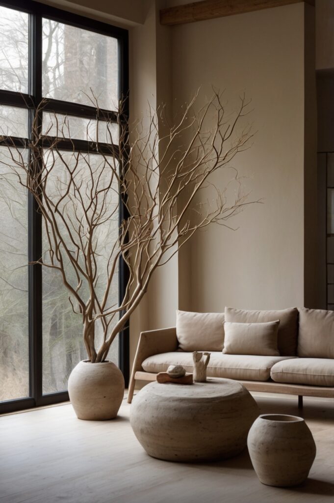 Some keep their bark, some lose it over time. Each branch creates lines and shadows across walls like living artwork. It’s the kind of decor that costs nothing yet outshines the expensive stuff.