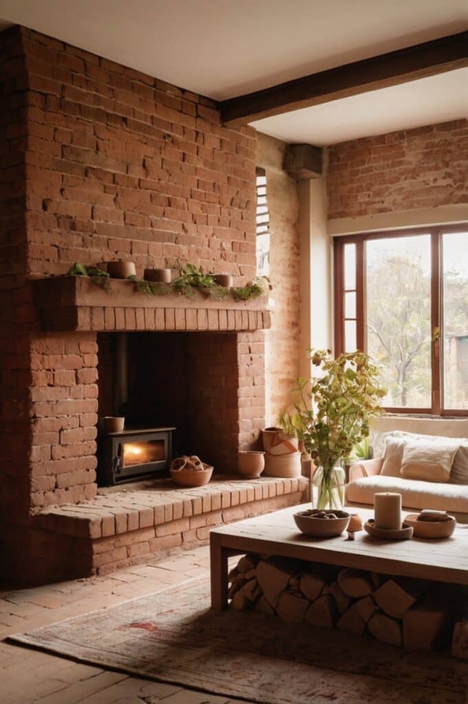 A wall doesn’t have to be smooth plaster, sometimes it wants to crumble a little. Exposed brick with its orange-brown warmth feels like the bones of the earth peeking through. Even just one section left raw can make the room feel more grounded.