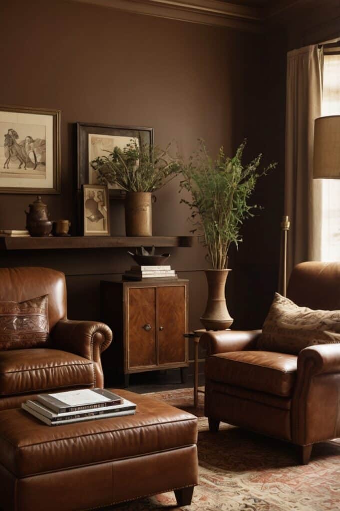 Even a small leather armchair with worn arms will carry the room. Pair it with a wool throw, and you’ve created a corner people fight to sit in. The smell of leather itself adds a grounding earthy note no diffuser can fake.