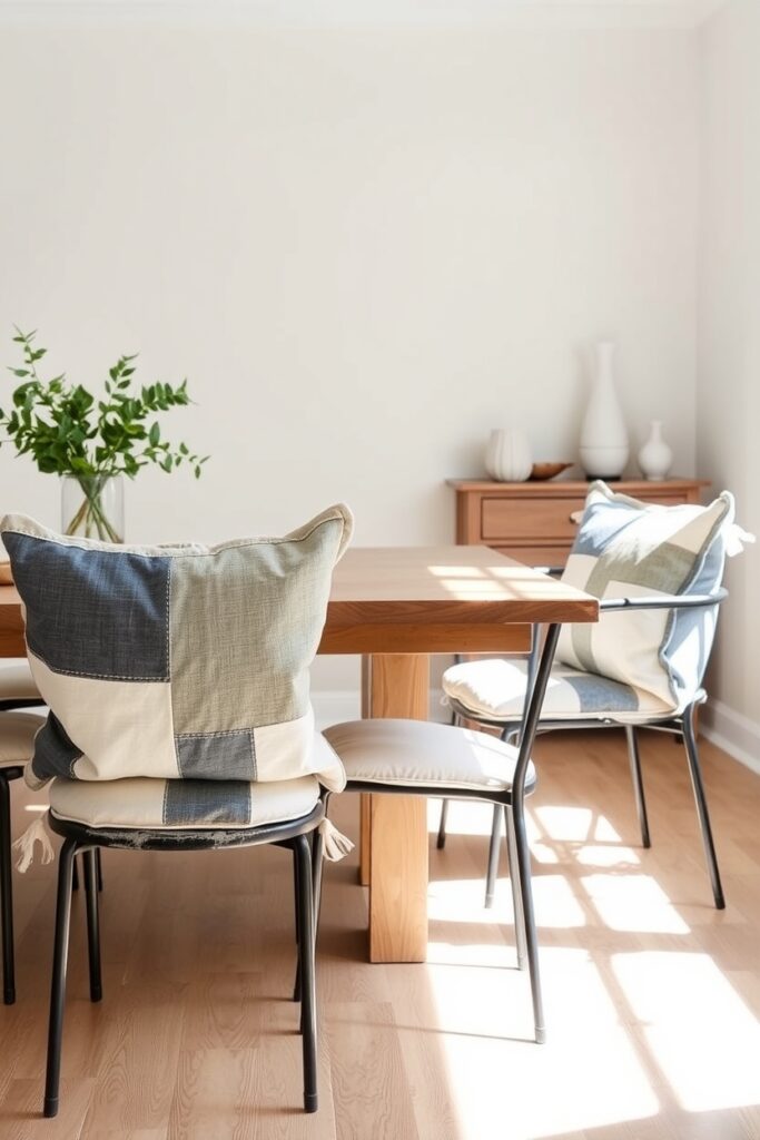 15. Faded Patchwork Chair Cushions With Slightly Oversized Stitching