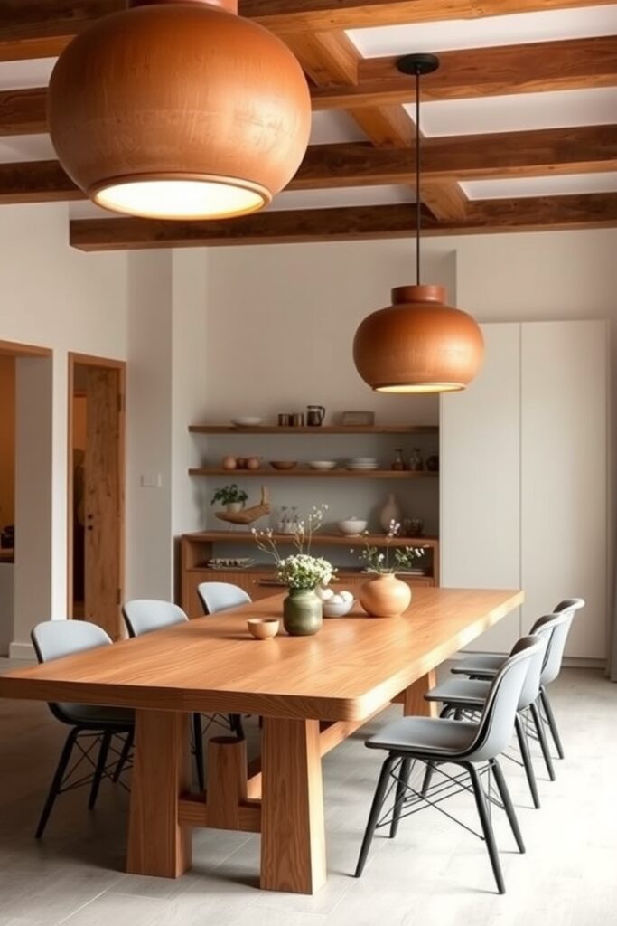 3. Soft-Glazed Terracotta Pendant Lights Above the Table