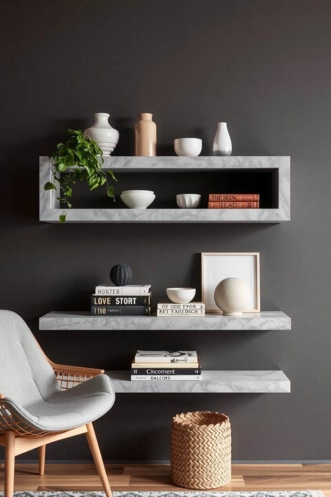 Floating concrete shelves look wild against a smooth painted wall. They don’t hide, they declare. You can buy pre-cast lightweight versions, so no one’s breaking their studs. Or you can coat wooden bases in microcement for that raw, industrial feel without the weight.