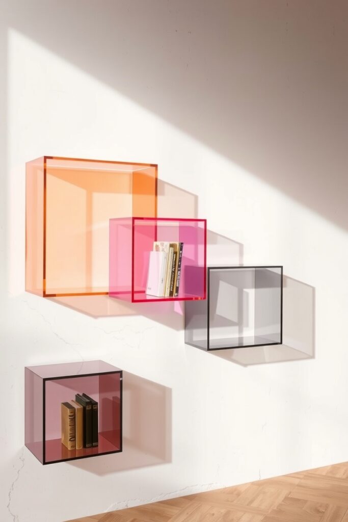 Transparent colors are having their renaissance. Think candy tones in translucent acrylic amber, lilac, smoky grey. They catch light like stained glass, making the wall behind them glow.