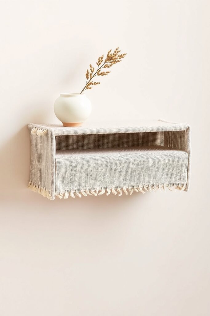 Picture a sleek wall-mounted base wrapped in handwoven fabric or natural linen. The shelf looks soft but stays solid a tactile surprise. You can edge it with brass trim, or leave it raw, frayed just a little.