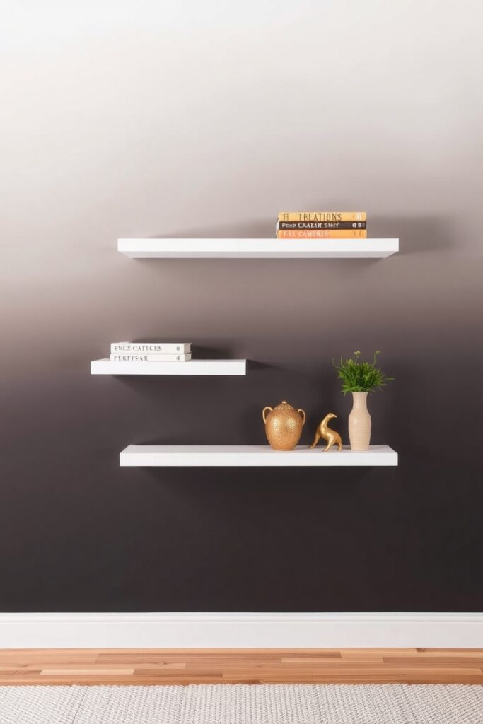 Paint your wall in a subtle ombré pale to dark then install floating shelves that follow the tone shift.