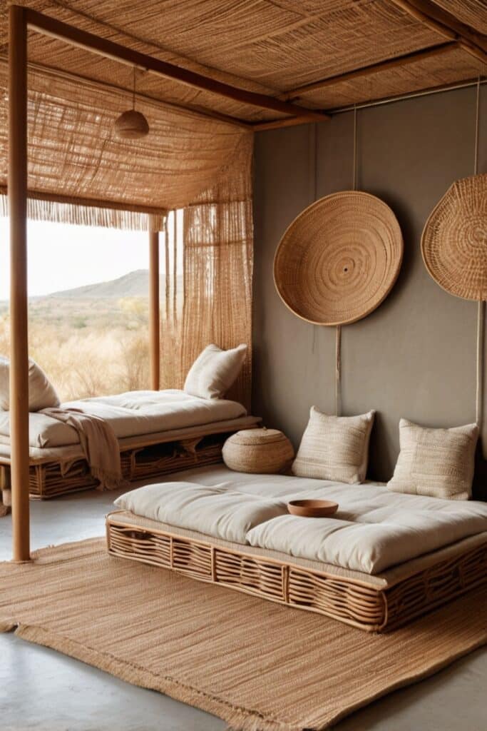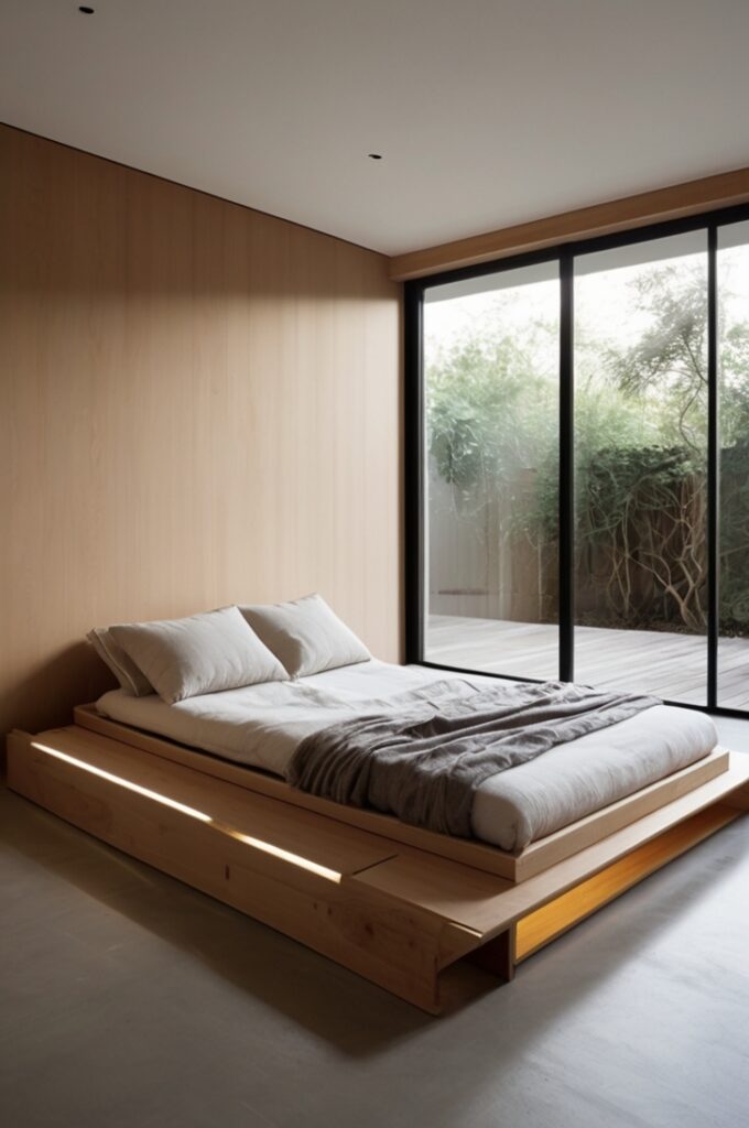 Pair it with paper lantern lights and a bamboo side table. Don’t overload with décor it’s about presence not clutter. Honestly, it feels more like living inside a haiku than a bedroom.