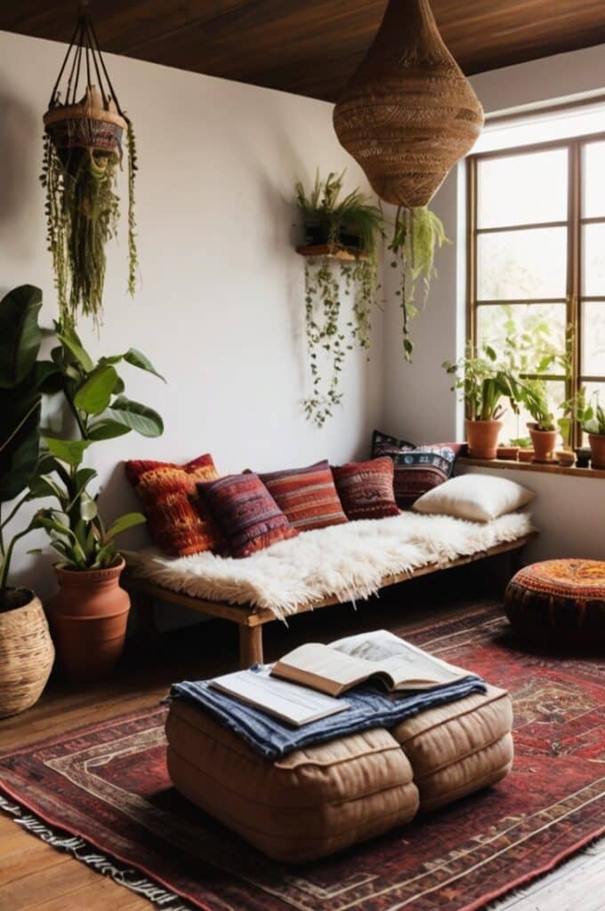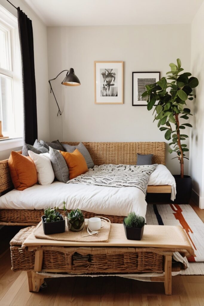 Think in layers. A futon alone might look plain, but stack textures and colors, and it transforms. The difference is in the details.