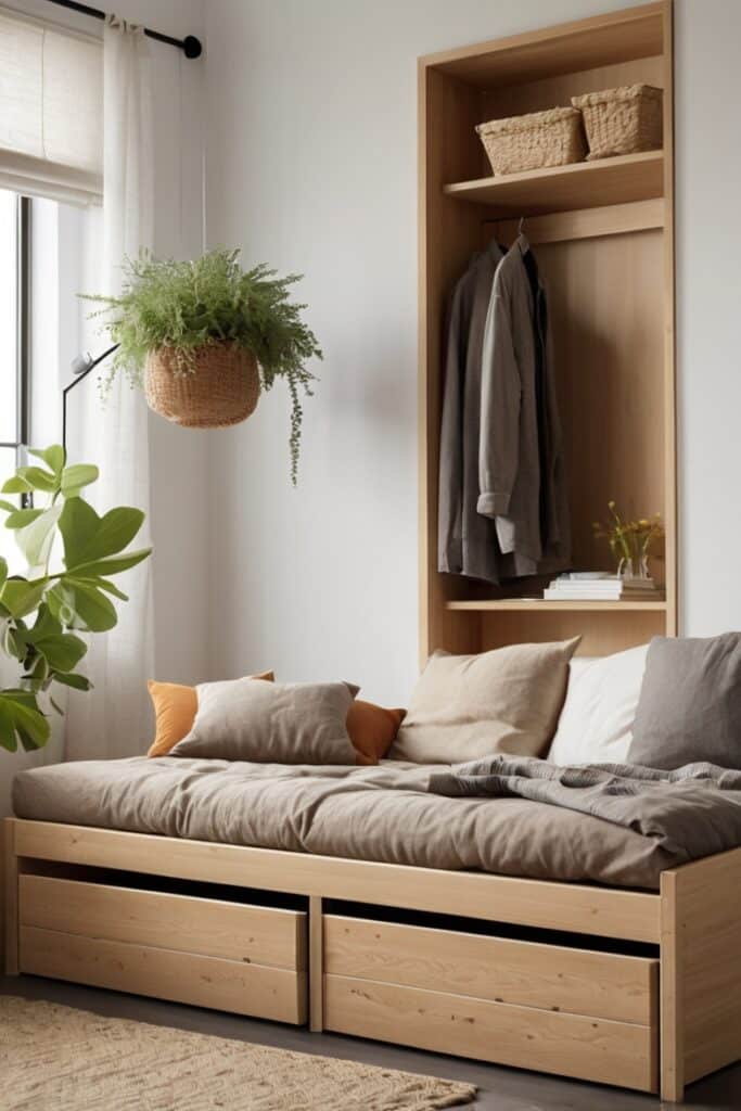 Bedrooms need stealthy storage, and futons make room for it. Go for frames with drawers underneath or even lift-up hydraulic bases. Suddenly the bed holds your spare linens, books, or off-season clothes.
