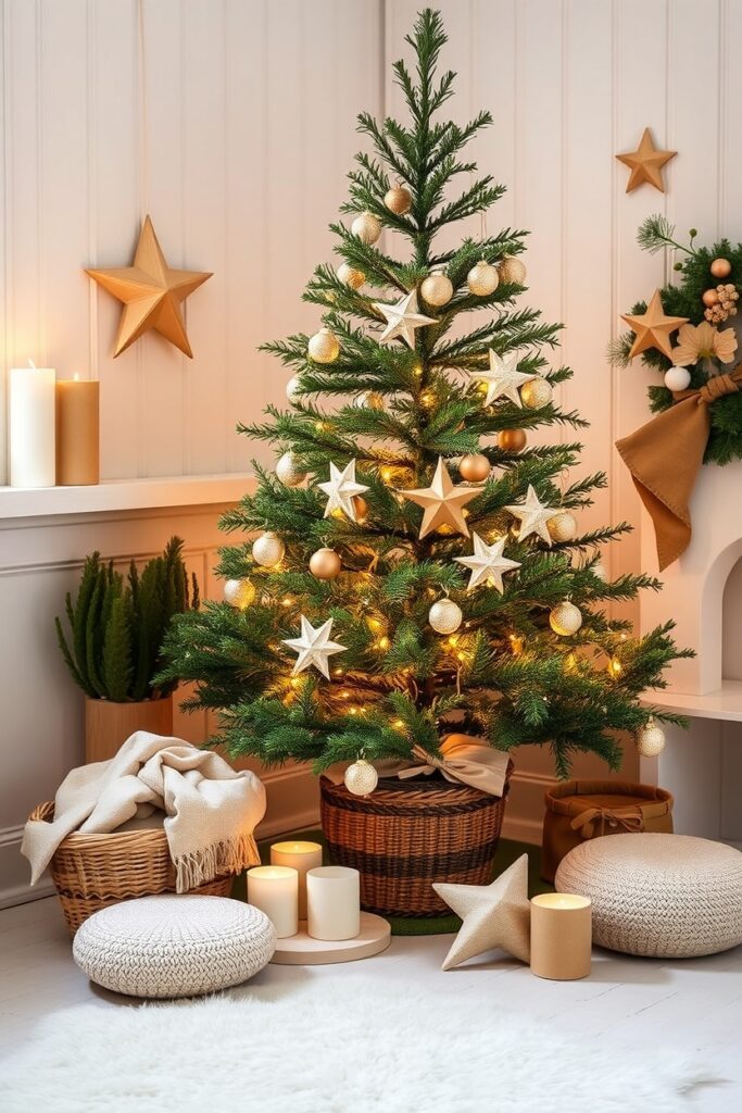Think a simple spruce tree in a woven basket, no fake snow this time. Decorate with paper stars, handmade ornaments, and just a sprinkle of gold ribbon. And yes, keep the fairy lights warm-toned, never harsh white. It’s the kind of setup where you’ll want to wrap yourself in a chunky blanket and sip cocoa that’s almost too rich.