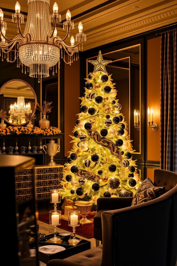 Go for gold and black as your base palette. Add glass ornaments, mirrored trays, and modern candleholders. A tree with alternating gold and black decorations looks surprisingly chic.