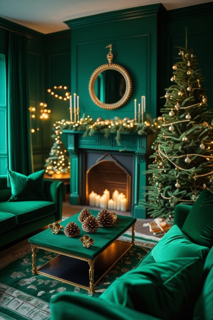 This one’s bold. Deep, moody colors like navy, charcoal, or forest green can make your living room feel like a mysterious winter hideaway. For 2025, interior designers are calling it “midnight Christmas” dramatic, cozy, and endlessly stylish.