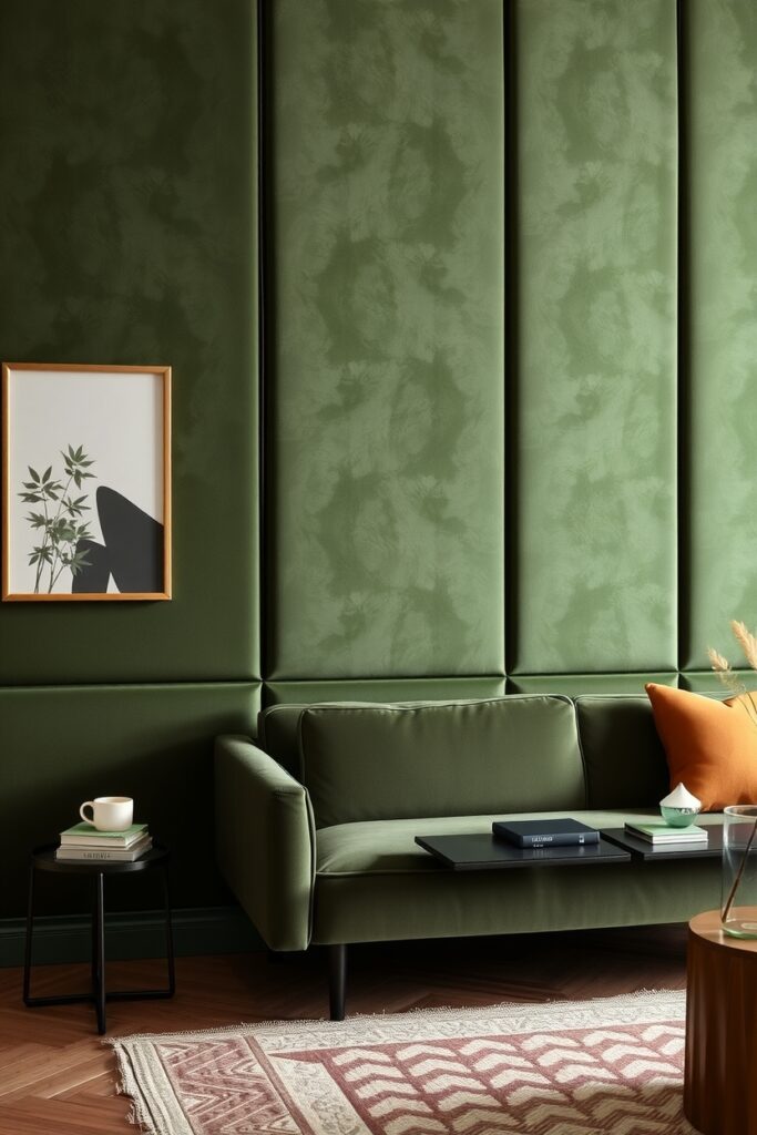 4. Velvet Green Wall Panels for Touch and Warmth