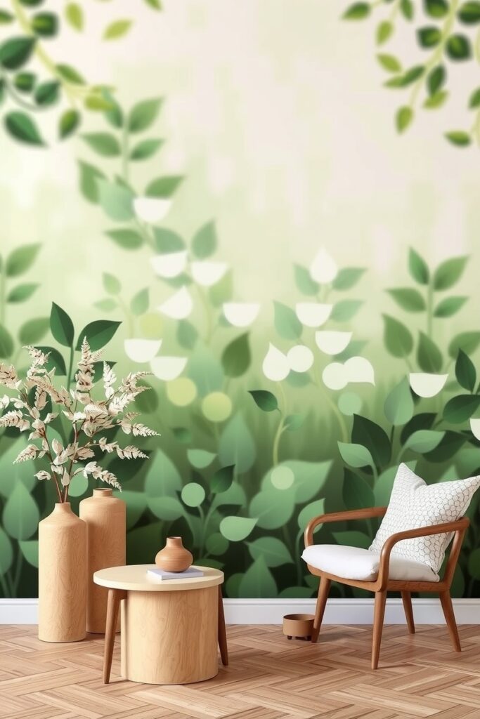 Pick one wall, the main one, and let it whisper. You don’t want the design to scream “nature.” You want it to breathe softly into the room.