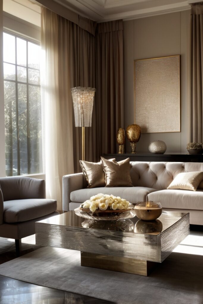 This idea isn’t sparkly in the tacky way. It’s subtle tiny metallic threads woven into soft neutral fabric. When daylight sneaks in, the curtain flickers like moving water.