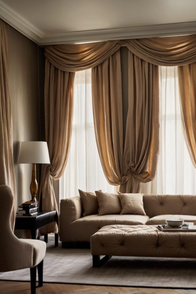 Play with thin sheers under thicker drapes, or mix two different textures entirely. The layers act like living room makeupblending, softening, enhancing.
