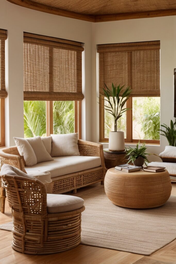 12. Woven Bamboo Curtains Paired with Fabric Side Panels