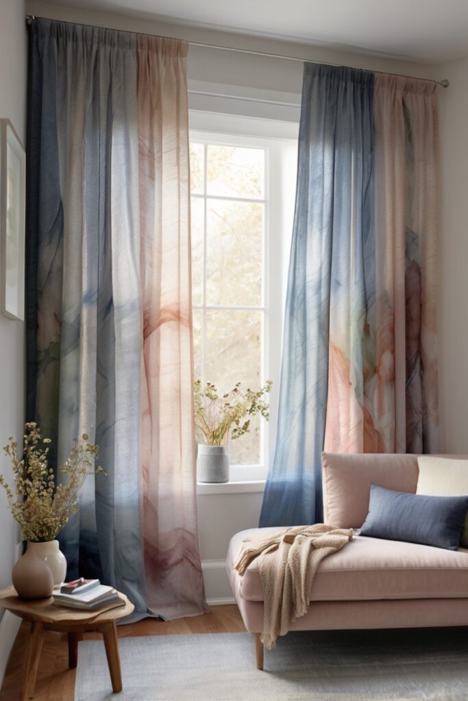 These aren’t regular printed curtains. The colors blur into each other like someone dipped the fabric in a dream and let it dry halfway.