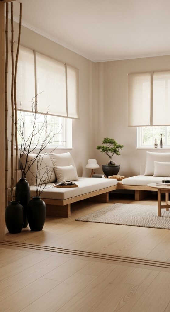 The world’s been noisy, right? Japandi steps in like a quiet friend with tea. This look sits perfectly over light hardwood floors especially the ones that lean natural, matte, and unsealed-looking. They don’t shine; they breathe.
