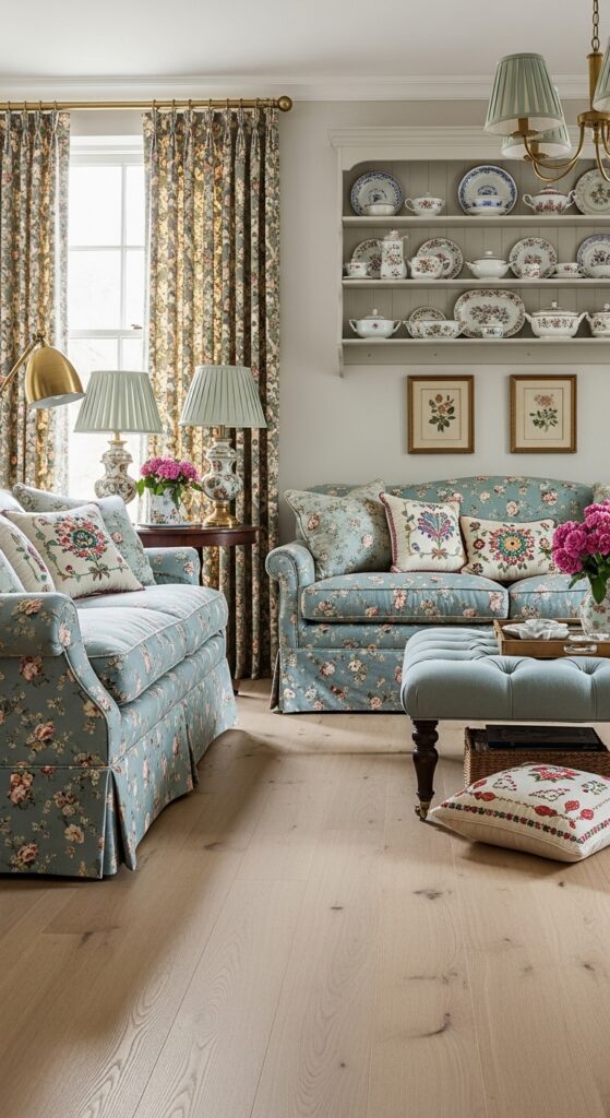 The anti-minimalist rebellion lives here. It’s for those who want their grandmother’s taste, but filtered through a modern lens. Light hardwood floors stop the look from tipping into “dusty” territory they make it feel bright and intentional.