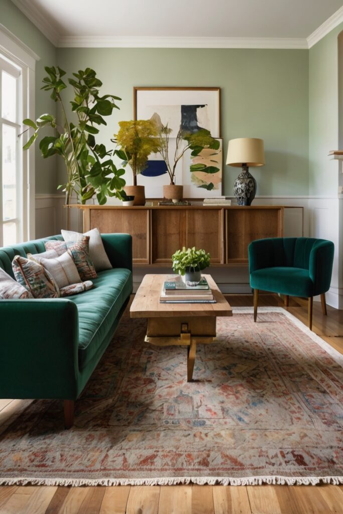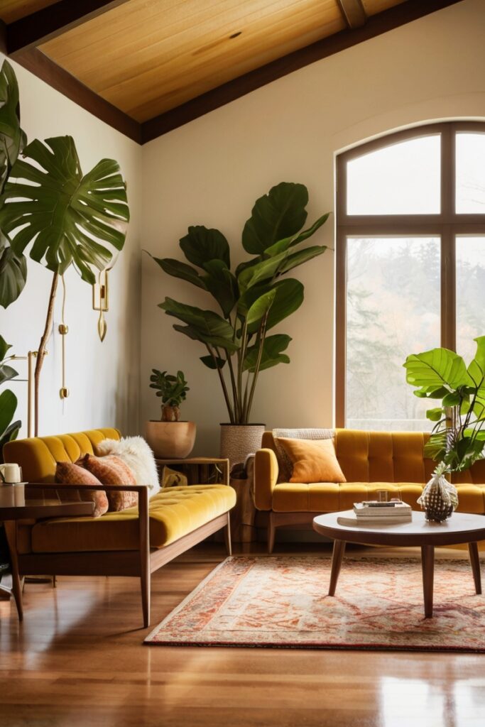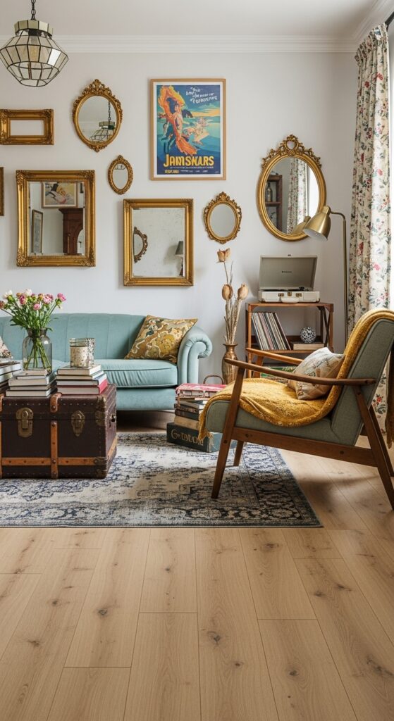 Now for the brave ones who can’t pick a single style. Light hardwood floors are your best base they’re neutral enough to let chaos make sense. Layer mid-century chairs with boho textiles, throw in a metallic lamp, maybe a rustic trunk. It shouldn’t match perfectly. That’s the fun.