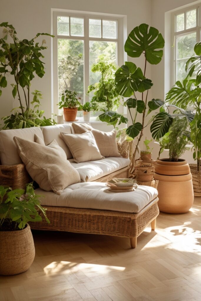 Add a soft linen throw, a few clay pots, and maybe one piece of abstract art that looks like someone half-finished it. That’s the whole point imperfection looks intentional here. The room doesn’t try too hard. It just exhales.
