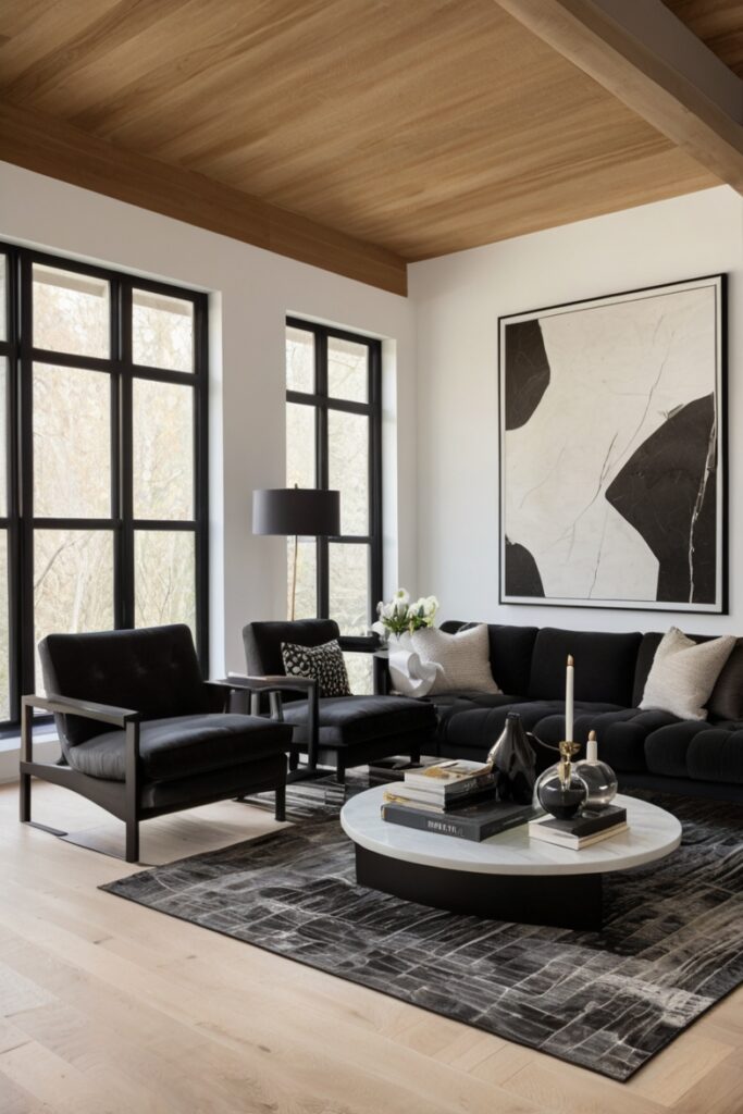 Here’s one for those who secretly hate color but still want drama. A monochrome room on top of light hardwood floors is like watching a silent film texture and shadow become the dialogue.