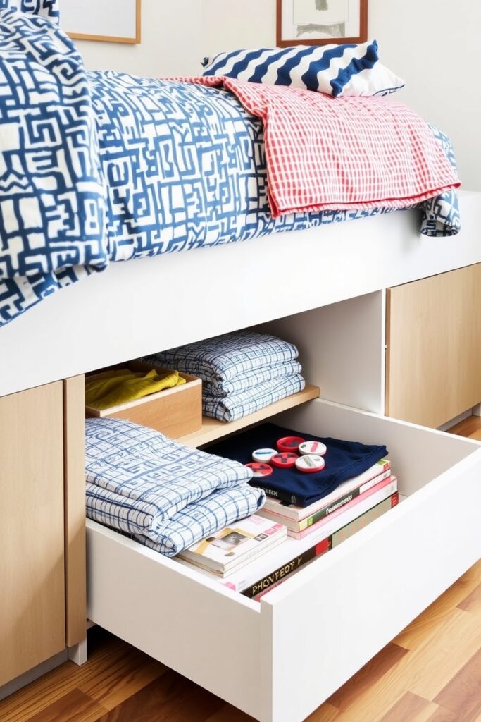 Underneath that lowered floor lies secret potential. Drawers, pull-out panels, or lift-up platforms can hide blankets, board games, or whatever clutter you don’t want to see.