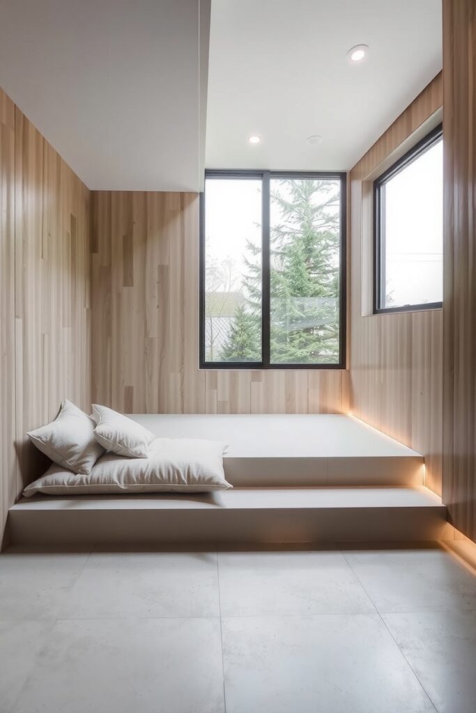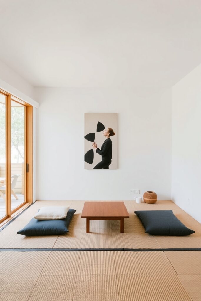 A low sunken seating area with a single wooden platform table, maybe a tatami-inspired mat or two. Simple, elegant, and so peaceful you might actually forget your phone upstairs.