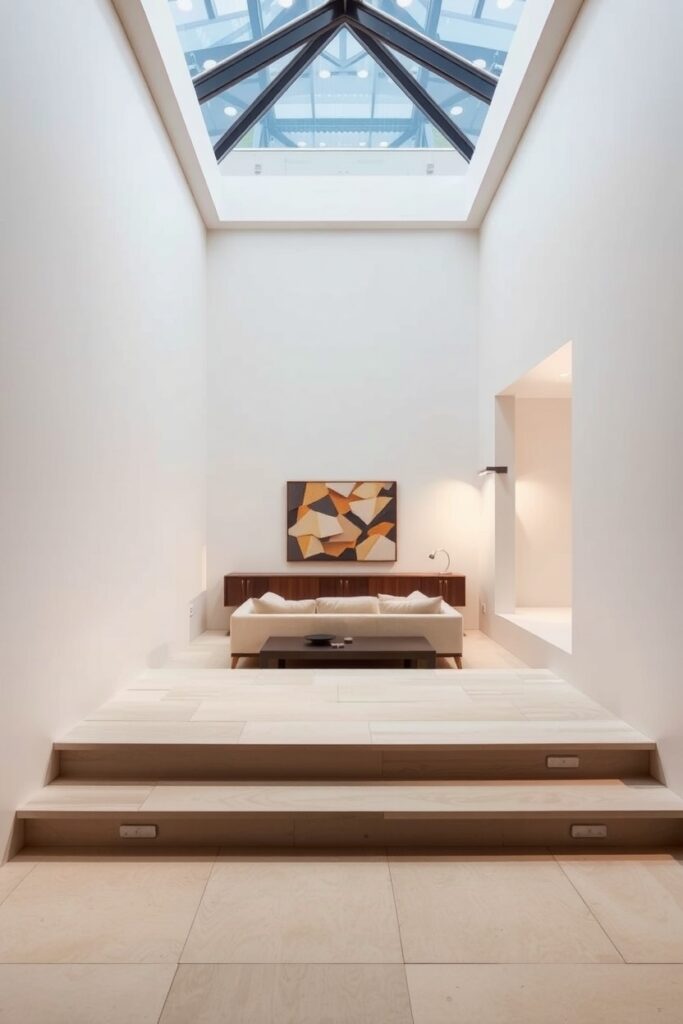 Add a railing or sleek divider if needed, or leave it open for a fluid, modern feel. The drop defines the mood light up top, cozy below.