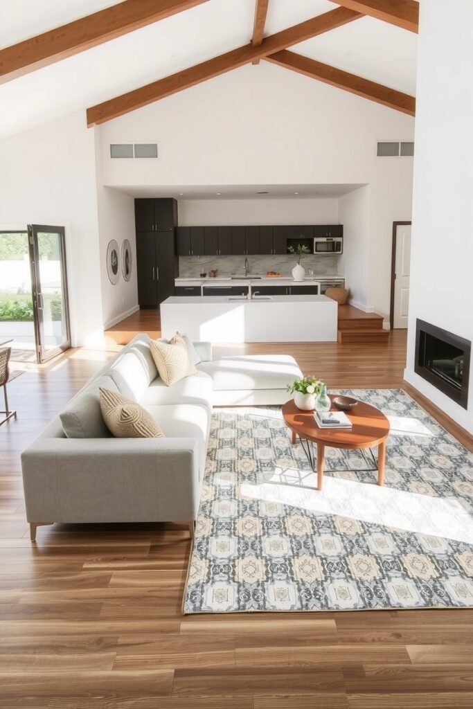 Picture this: an open-plan space where the living area gently drops down by a single step. Not enough to scream for attention but enough to softly define where relaxation begins.