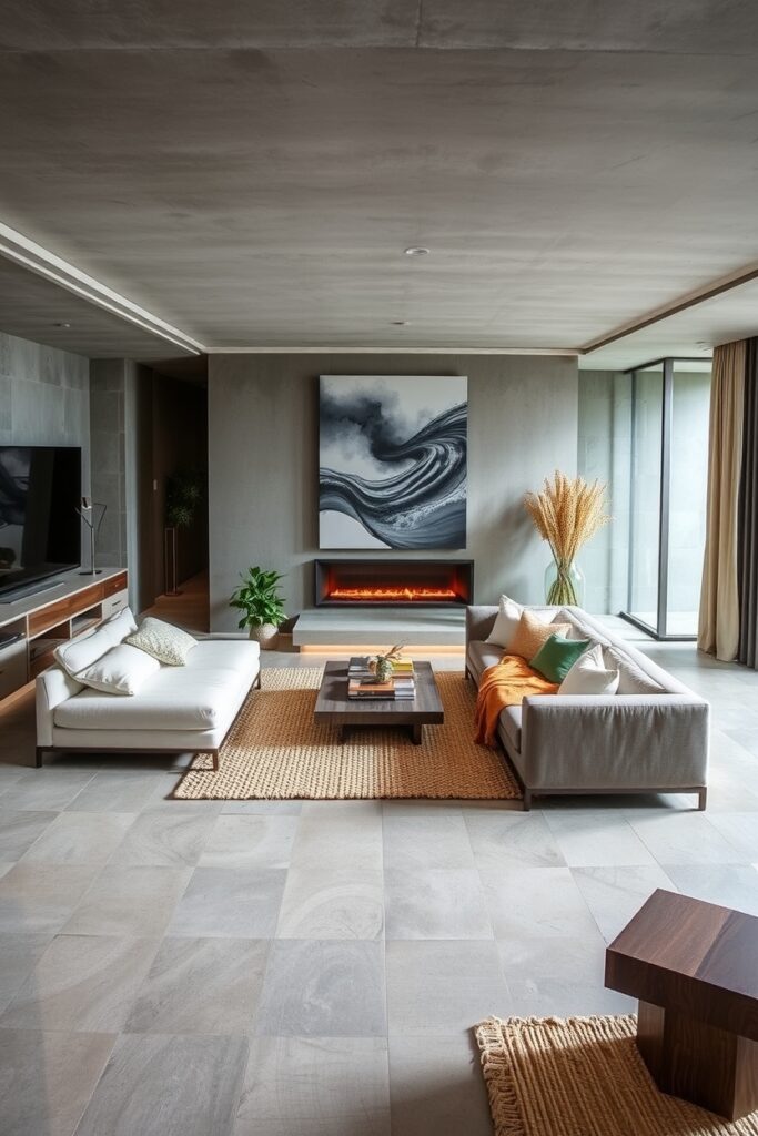 A sunken living room carved out of polished concrete feels almost futuristic but not cold. Pair that solid industrial base with plush furnishings, earthy textiles, and warm lighting to soften the edges.