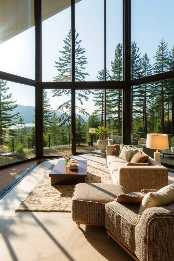 This concept works especially beautifully in homes with good views mountains, forest, or even city lights. It’s less a living room, more a living scene.