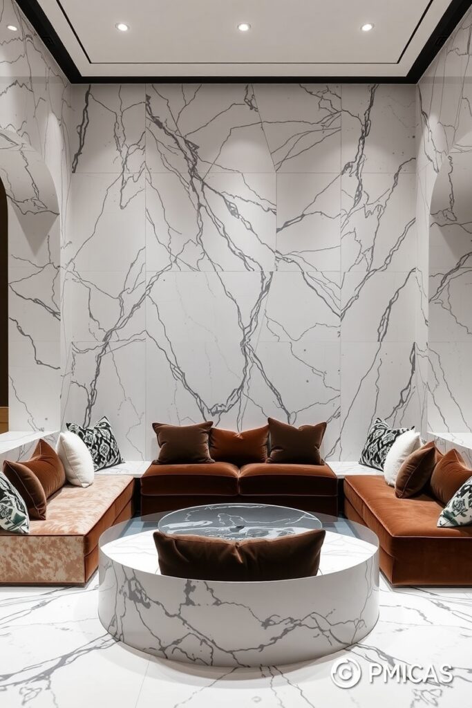 If you’re going bold, go all in. A marble-lined sunken living area screams sophistication without saying a word.