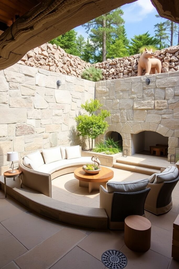 Use natural stone around the sunken edge for an organic, earthy vibe. Think slate, travertine, or sandstone paired with soft linen seating.