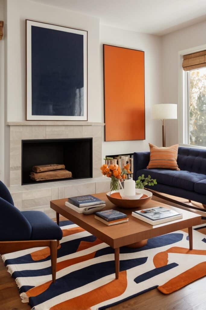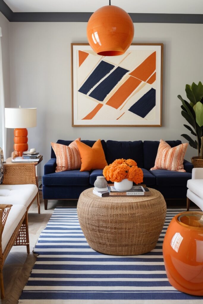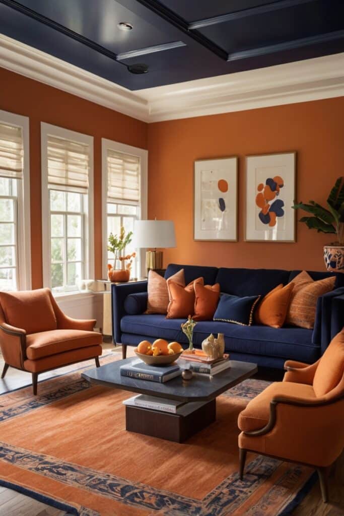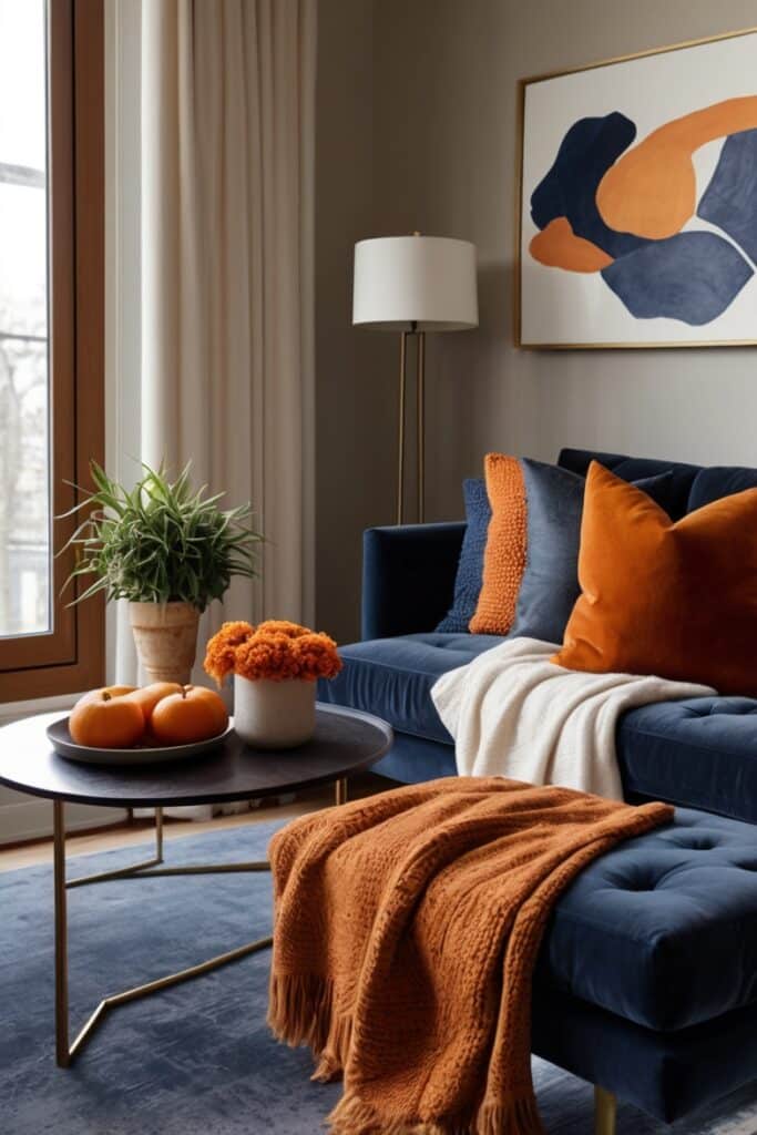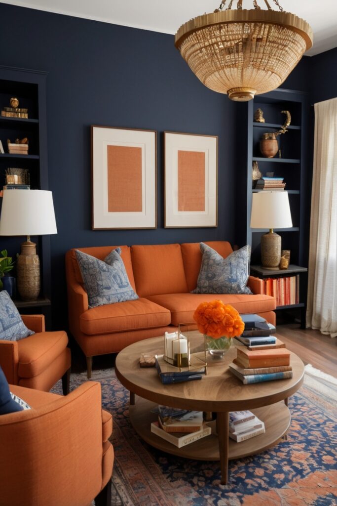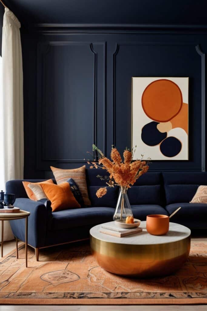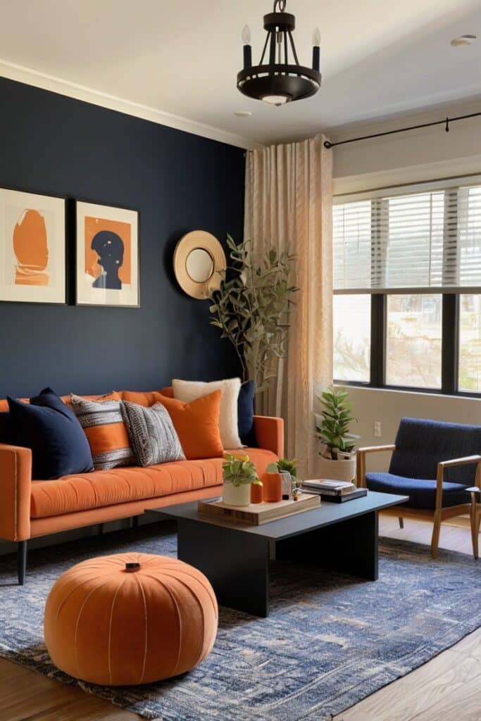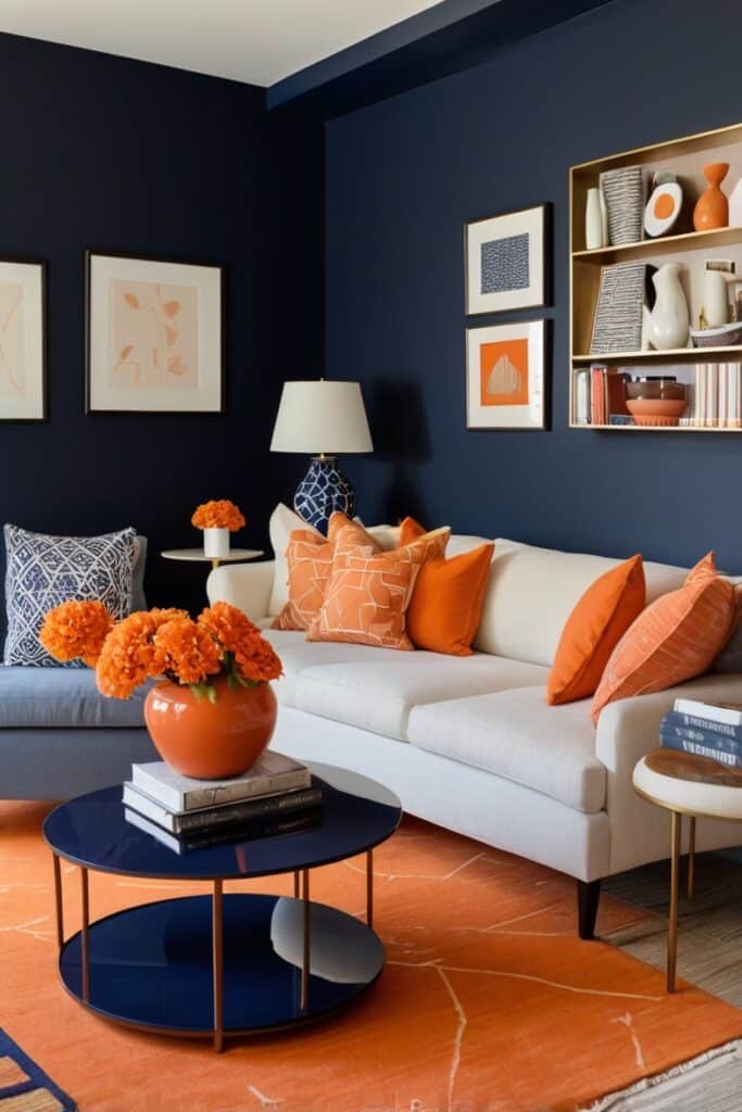 When someone walks into a navy and orange space, they don’t forget it. They sit longer. They notice details. They feel something—warmth, calm, drama, all woven together. That’s the kind of living room you want. That’s the kind of story your home should tell.