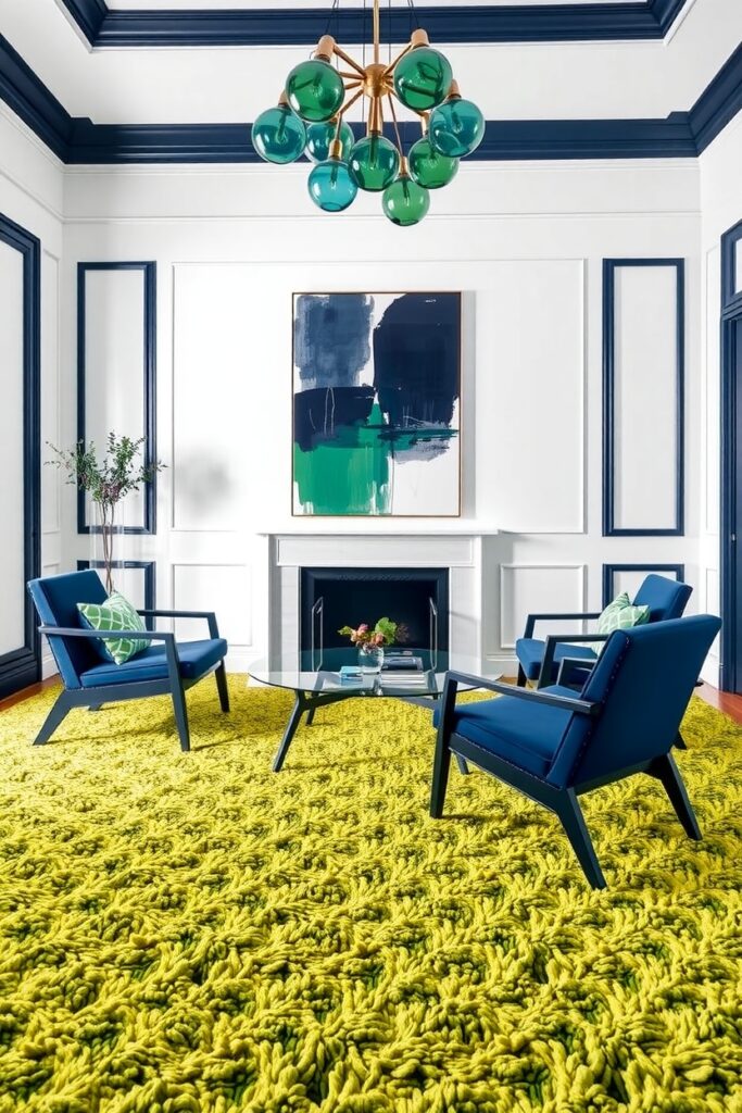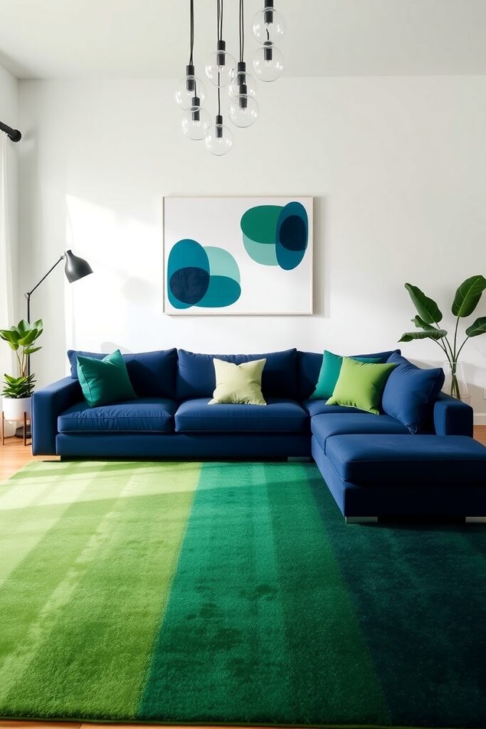 Rugs get ignored way too often. In 2025, gradient rugs going from lime to deep emerald under navy modular sofas make the whole room hum like sound waves. You walk across it and your eyes don’t even know where to land first.