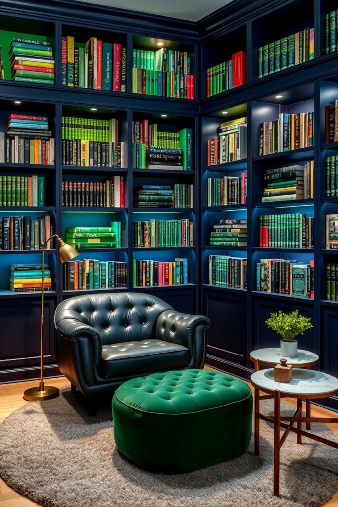 Fill a navy bookshelf floor-to-ceiling, but here’s the trick—choose books with only green spines. Doesn’t matter the subject, just the covers. Suddenly, the entire shelf reads like a color-coded installation.